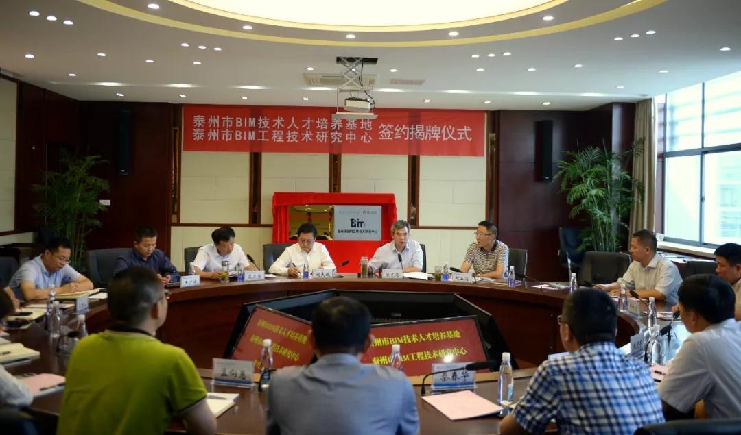 9月26日下午,泰州市BIM技术人才培养基地签约仪式和泰州市BIM工程技术研究中心揭牌仪式在南理工泰州科技学院举行。省住建厅副厅长刘大威、市政府副市长徐克俭、市住建局局长高卫东、我司董事长韩秋宏等出席活动。