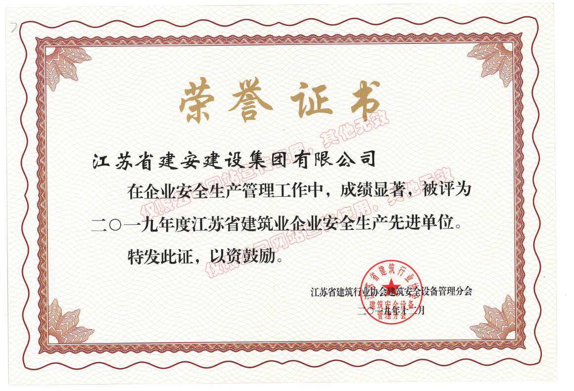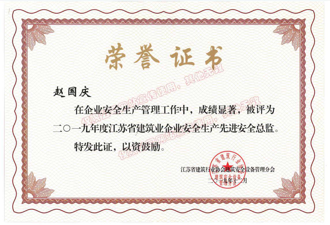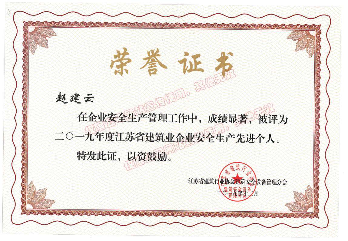 开云在线登录公司荣获2019年度“江苏省建筑业企业安全生产先进单位”称号;副总经理赵国庆同志荣获2019年度“江苏省建筑业企业安全生产先进安全总监”称号;赵建云、倪建军、王凤山、周伟4名同志荣获2019年度“江苏省建筑业企业安全生产先进个人”称号。